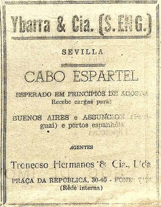 Ybarra & Cia., de Sevilha - agentes: Troncoso Hermanos & Cia. Ltda.