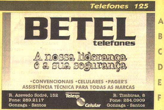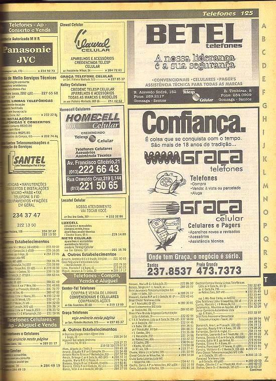 Publicado na Lista Telefônica Listel-Telesp Santos - "Páginas Amarelas"- 1988, página 125