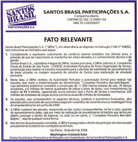 Santos Brasil Participações S.A. - expansão portuária na margem esquerda do porto de Santos