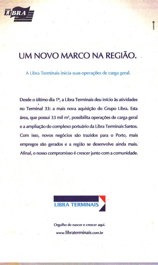 Libra Terminais - Início em 1/9/2009 das operações do Terminal 33, margem direita do porto