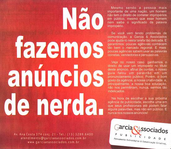 Garcia & Associados Publicidade - anúncio de oportunidade, após notícias de palavrão dito pelo presidente da República, Luiz Inácio Lula da Silva, durante discurso
