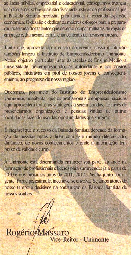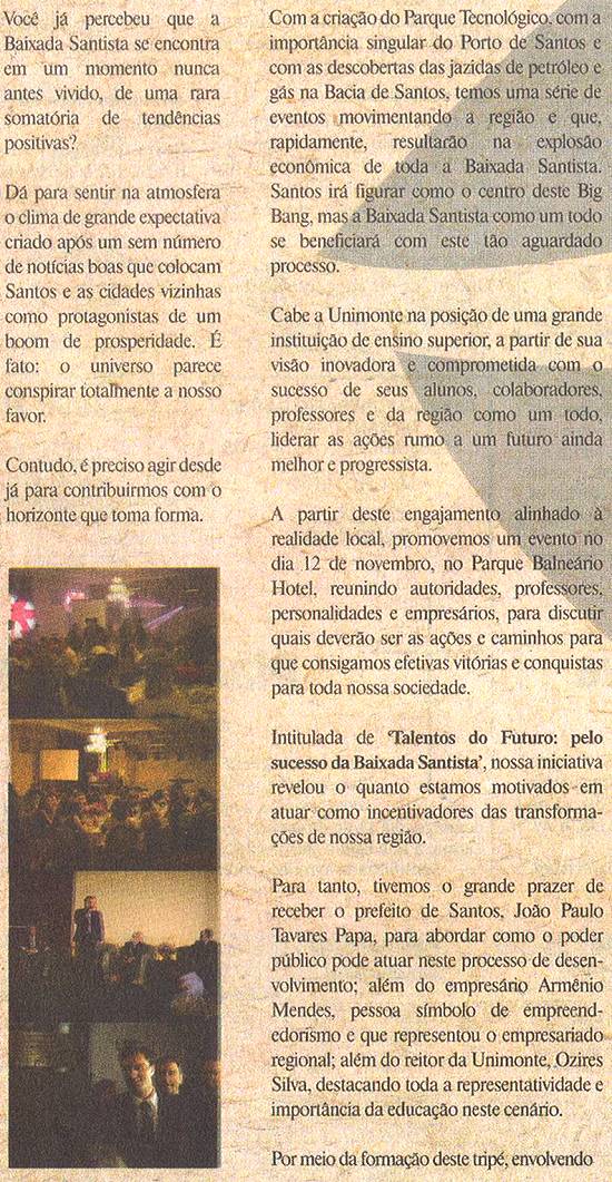 Publicado no jornal santista A Tribuna, em 4 de dezembro de 2009, pág. A-5