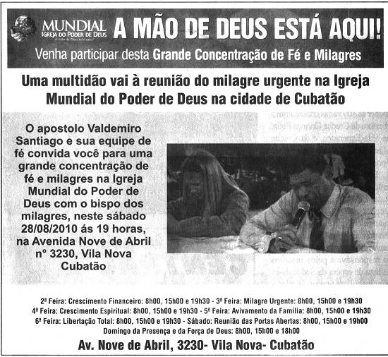 Igreja Mundial do Poder de Deus - Cubatão - Grande Concentração de Fé e Milagres