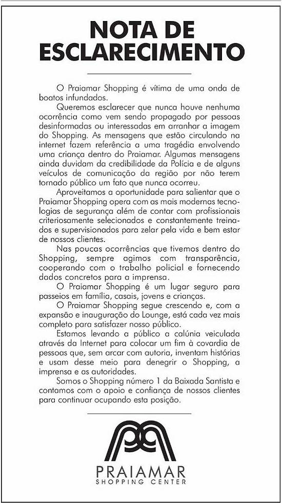 Publicado no jornal santista A Tribuna em 20 de novembro de 2010, página A-8