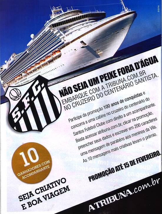 Jornal A Tribuna - promoção do Cruzeiro Marítimo de Centenário do Santos Futebol Clube