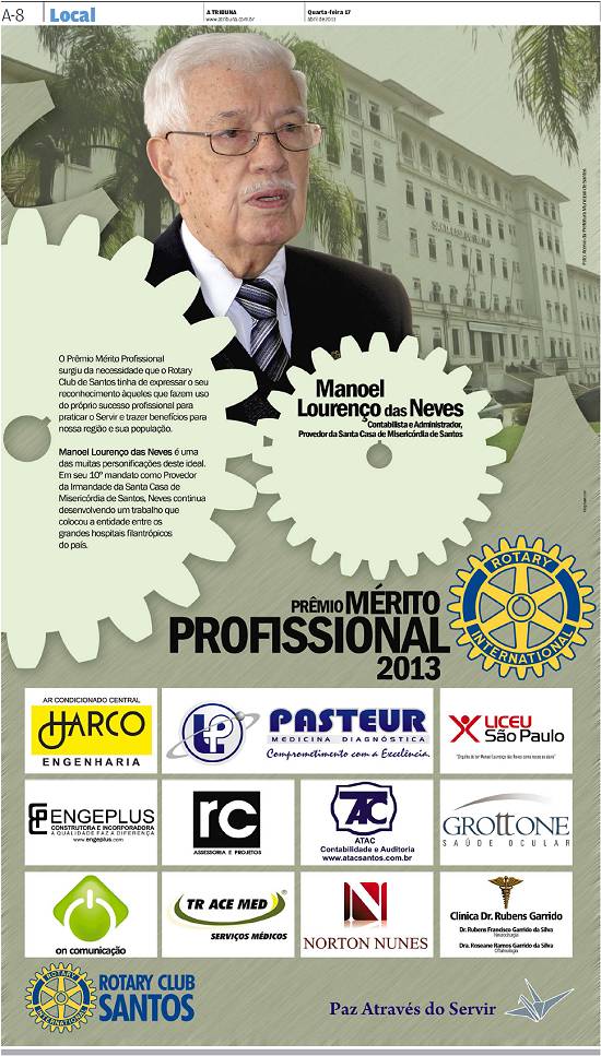 Rotary Club - Prêmio Profissional do Ano - Manoel Lourenço das Neves - provedor da Santa Casa