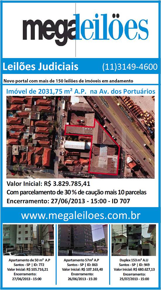 Anúncio publicado no jornal santista A Tribuna, em 10 de junho de 2013, páginas A-4 e A-5