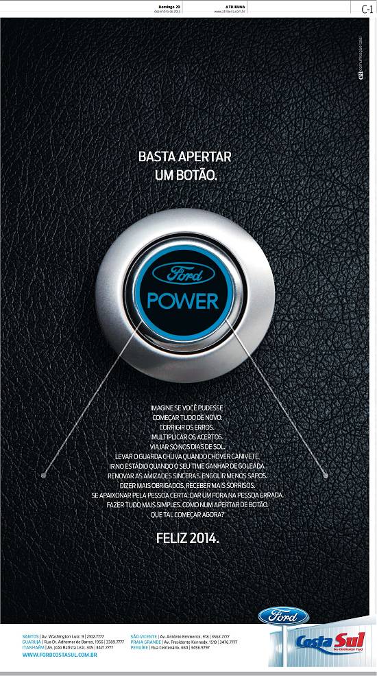 Costa Sul - concessionária da fábrica de automóveis Ford - relacionando as mudanças com um novo carro com botão de energia no lugar da chave de ignição