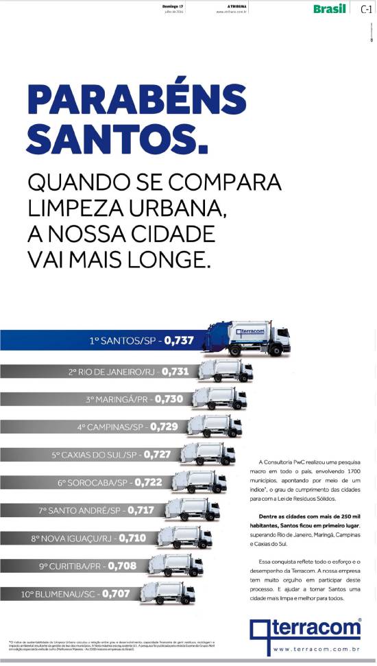 Terracom - Santos, primeiro lugar em limpeza urbana no Brasil