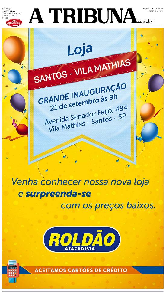 Publicado no jornal santista A Tribuna em 21 de setembro de 2016, capa promocional 2