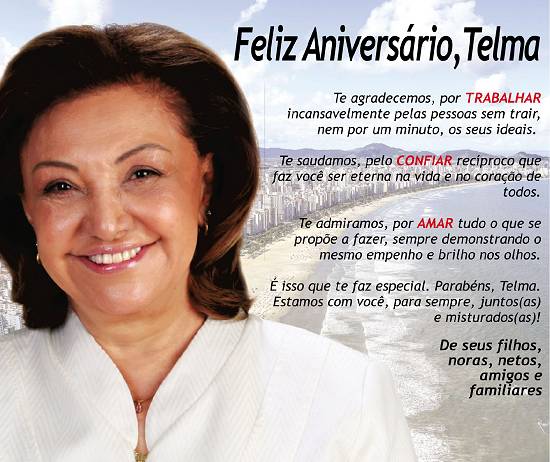 Eleições 2016 - anúncio de aniversário da candidata e ex-prefeita Telma de Souza