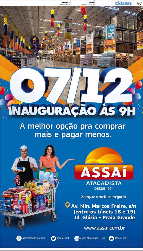 Supermercado Assaí Atacadista inaugura loja em Praia Grande (data adiada)