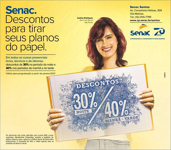 Serviço Nacional de Aprendizagem Comercial (Senac) - 70 anos - Santos - novos cursos