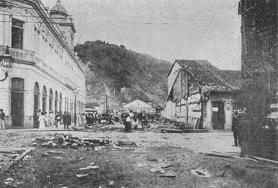 Alguns sobradões da Rua 15 de Novembro, com fundos para a 24 de Maio, caíam já, por terem sido focos de peste em 1899, sendo substituídos por prédios salubres, altos, arejados e de