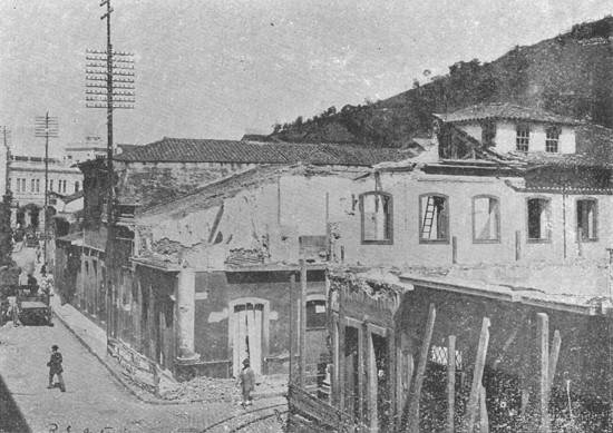 catástrofe, dadas as condições que observamos, propícias ao seu desenvolvimento. De fato, tratava-se de povoação velha e decadente, de tipo primitivo, de ruas estreitas, bordadas de prédios ruinosos e esburacados, com aposentos escuros e úmidos,
