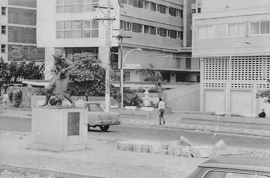 esta estátua "Foi inaugurada em 1941, no jardim da praia, em frente ao Instituto "Dona Escolástica