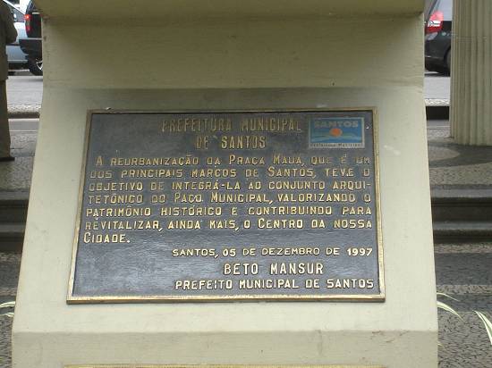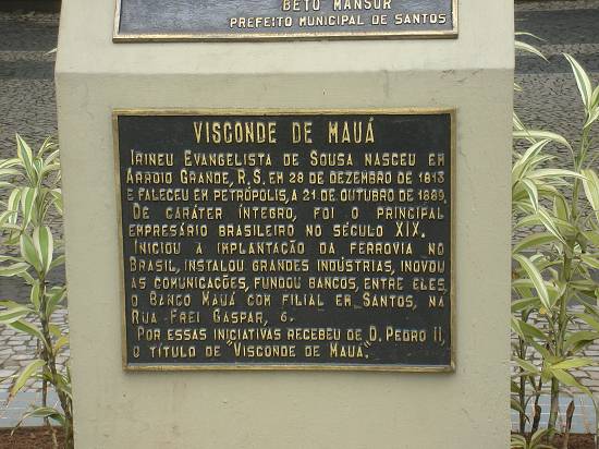 Em 1997, durante a reurbanização da Praça Mauá, foi erigido este monumento em homenagem a Irineu Evangelista de Souza, cujo título dá nome à praça, e que foi um dos principais responsáveis pela criação da ferrovia que liga Santos à capital paulista. Estas imagens são de 2007: