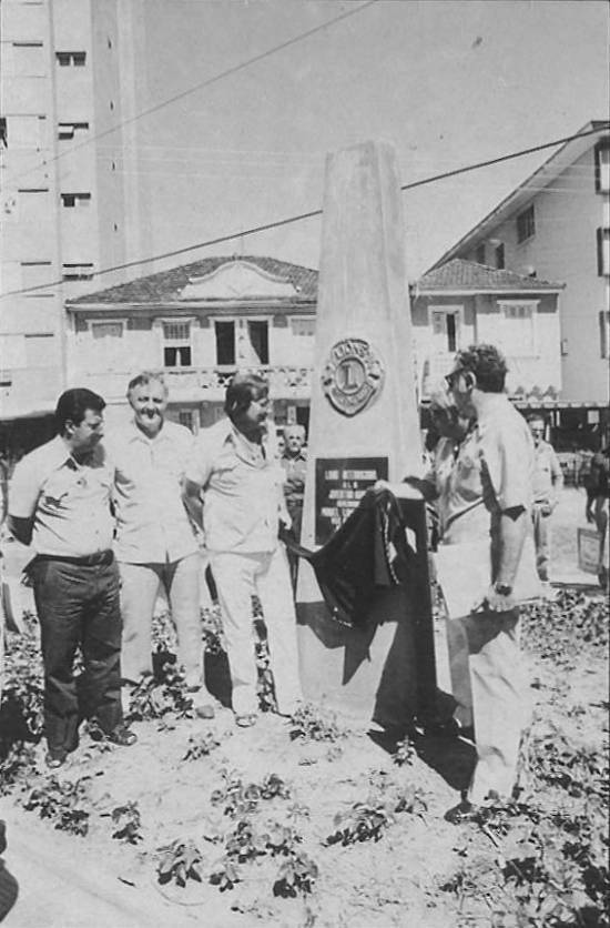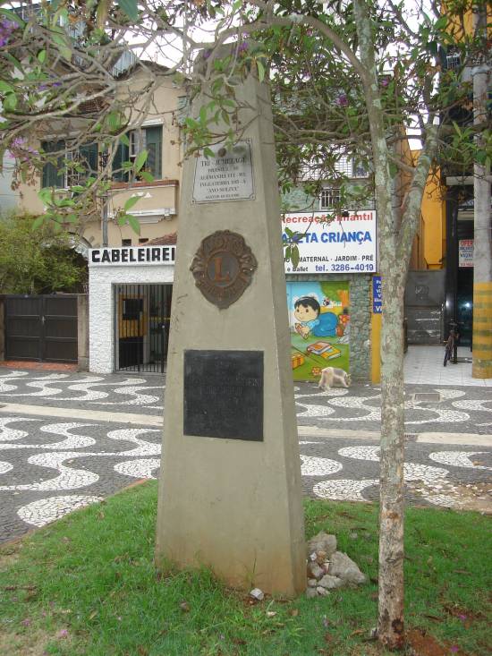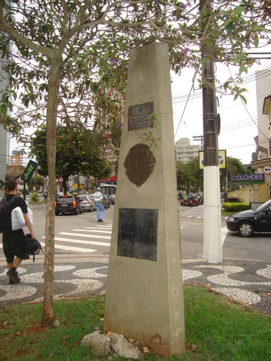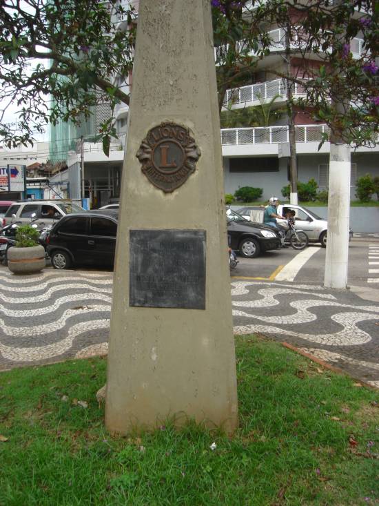 Jones, fundador do Leonismo Internacional. Com três faces que se juntam em ângulo quebrado, o obelisco foi proposto pelo Lions Clube de Santos-José