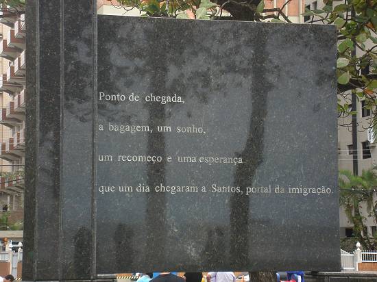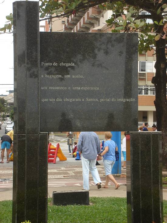 colocada nos jardins da praia, dentro das festividades aos 500 Anos do Descobrimento. A obra em bronze - Os Imigrantes - com altura de