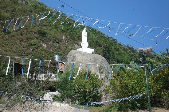 colocada sobre uma das fendas naturais que circundam o santuário, numa plataforma adrede preparada.