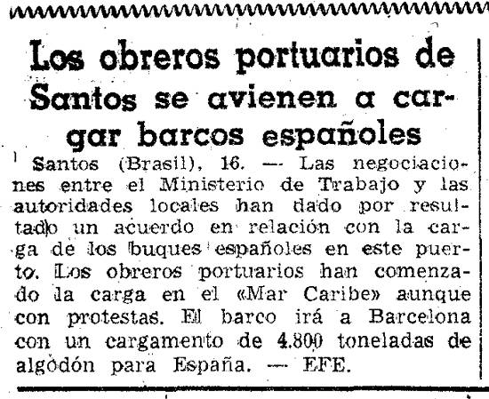 deram por resultado um acordo em relação com a carga dos navios espanhóis neste porto. Os trabalhadores portuários começaram o embarque no Mar
