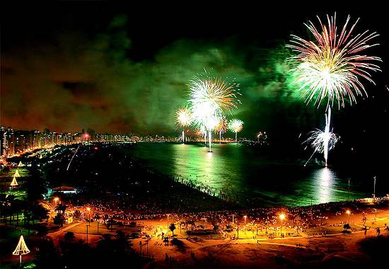 pirotécnico promovido pela prefeitura, com duração de mais de 15 minutos, e as apresentações musicais, realizadas em diferentes pontos da orla e na área continental, fizeram a alegria das milhares de pessoas que saíram de casa para comemorar o