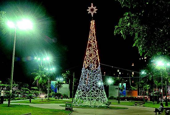 públicas e nos prédios, além de inúmeros presépios e outras festividades públicas e nas residências. Um evento específico santista é a promoção "Santos Nossa Luz", iniciada em 1997 a partir da montagem colaborativa de uma árvore com iluminação
