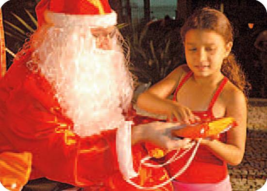 Vida, Carlla Bartoloto e Ludyne Medeiros da Silva. No final, o bonde turístico levou Papai Noel, que distribuiu kits com livros e doces.
