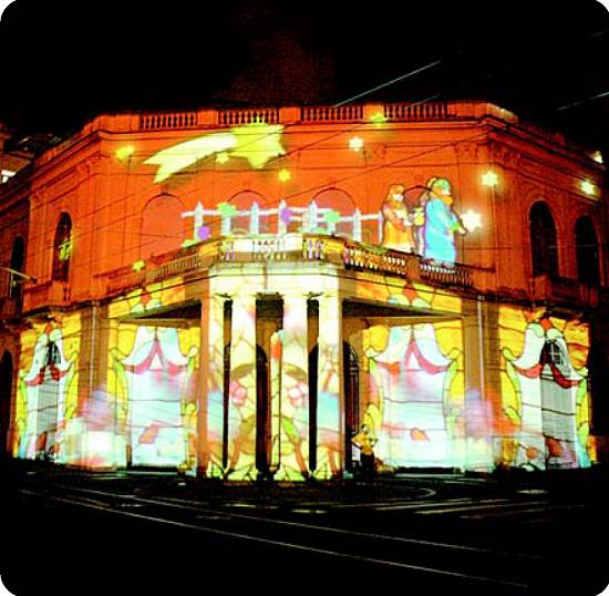 Projeção - As cerca de mil pessoas presentes ao espetáculo foram convidadas a assistir, na Praça José Bonifácio, à projeção de animação computadorizada utilizando como tela a fachada do Teatro Coliseu. Foram apresentadas animações sobre o nascimento de Jesus, elementos natalinos e um cordão de luz sobre os detalhes do teatro.