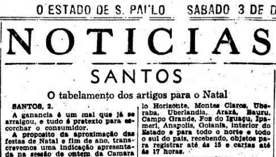 A propósito da aproximação das festas de Natal e fim de ano, transcrevemos uma indicação apresentada na sessão de ontem da Câmara Municipal pelo vereador Rafael Tavares, alertando a Comissão Municipal de Preços contra os aproveitadores: "Indico à Comissão Municipal de Preços, tendo em vista a indicação feita em sessão de 10 do pretérito, a conveniência inadiável de iniciar desde já as necessárias verificações para o absoluto 'controle' e criterioso tabelamento dos artigos de natal, desde que estão chegando ao nosso porto, de procedências várias, grandes quantidades desses artigos, tais como: castanhas de Portugal, nozes do Chile, frutas secas (principalmente passas) da Argentina etc.
