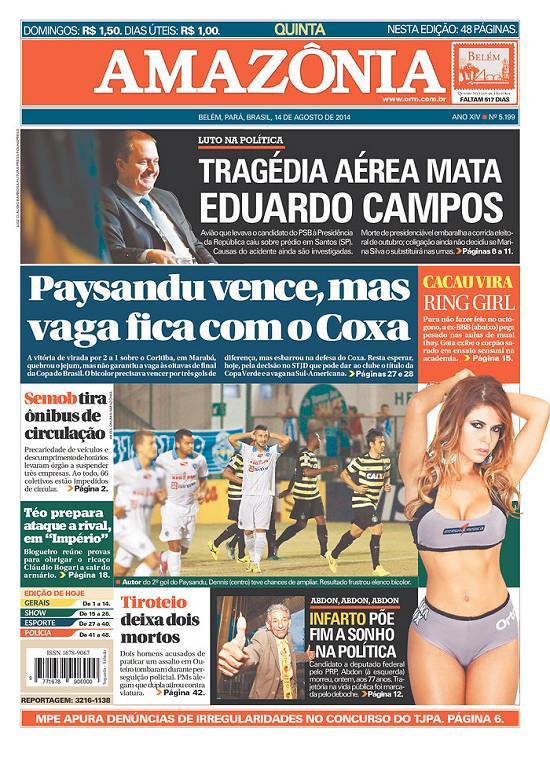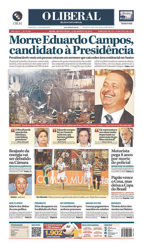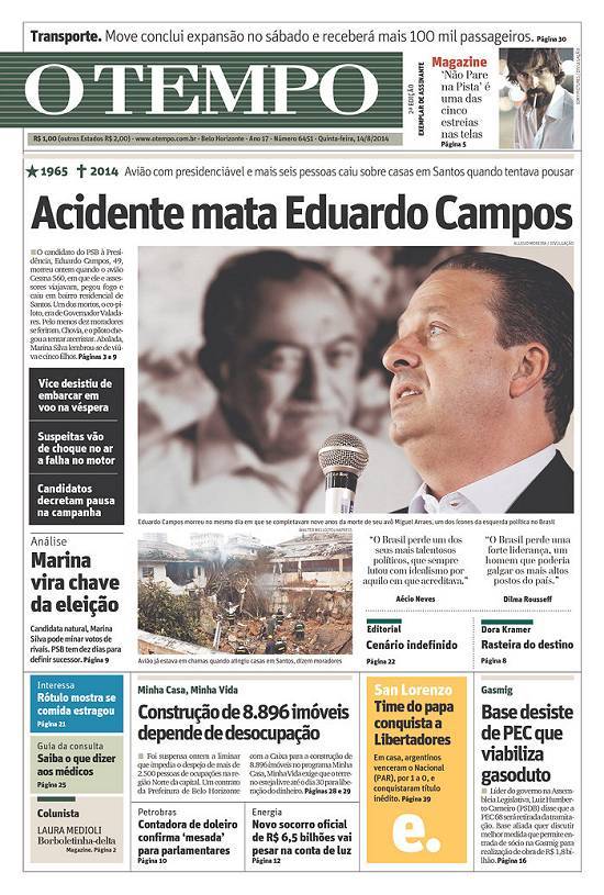 ganhou imediata repercussão mundial por ter entre as vítimas um candidato à presidência da República em plena campanha eleitoral, o ex-governador de Pernambuco, Eduardo Campos, e seus assessores, num jato que caiu no bairro do Boqueirão.