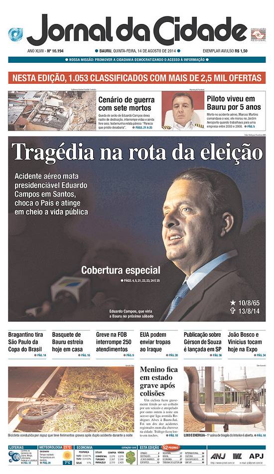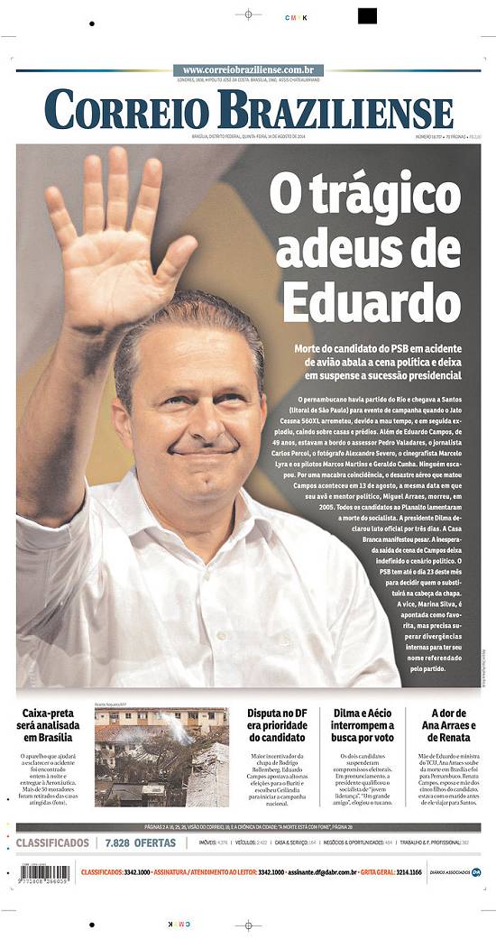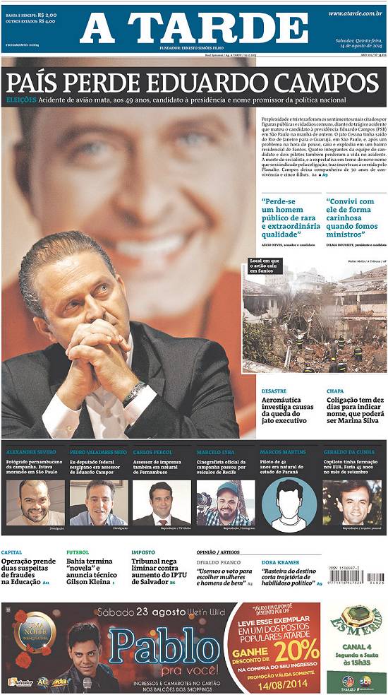 ganhou imediata repercussão mundial por ter entre as vítimas um candidato à presidência da República em plena campanha eleitoral, o ex-governador de Pernambuco, Eduardo Campos, e seus assessores, num jato que caiu no bairro do Boqueirão.