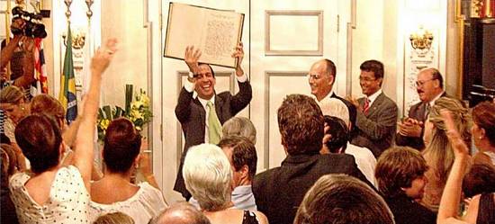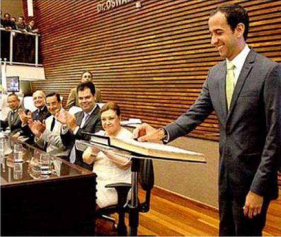 Hoje, nesta casa de leis, diante de vereadores, amigos, familiares e de todos os santistas presentes nessa cerimônia democrática e festiva, fica difícil sintetizar em poucas palavras a alegria desse ato.