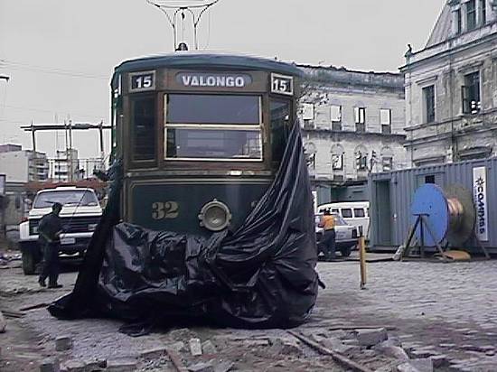 a nova linha 15, o bonde turístico de Santos entrava no dia 19/9/2000 (quando foram captadas estas imagens) na fase de