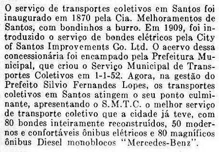 Por volta de 1968 (data presumida), um cartão postal sem identificação de autoria destacava a qualidade dos transportes públicos obtida pela administração municipal do prefeito Sílvio Fernandes Lopes (que esteve no cargo de 14/4/1965 a 14/4/1969). Além de uma imagem das praias de Santos, destacando-se no primeiro plano o abrigo para passageiros de bondes, na "ilha" entre as pistas da avenida na praia do Boqueirão, o postal é ilustrado com a foto do bonde prefixo 1 com tração animal, e um dos novos ônibus no trecho final da Avenida Conselheiro Nébias: