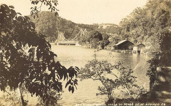Neste postal publicado pela empresa Wessel, em meados do século XX, vê-se a baía interna e a Ponte Pênsil, desde as ruínas do Porto das Naus: