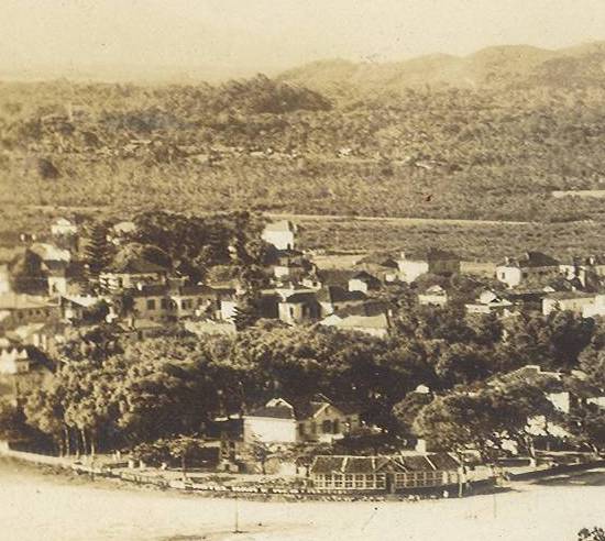 na época da Segunda Guerra Mundial. Obtida desde a Ilha Porchat, a fotografia mostra ainda outras áreas próximas: