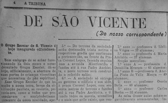 sabiamente; no entretanto, resultava em contraste a nossa S. Vicente, partícula deste mesmo Estado, sem um grupo escolar, sem mesmo um