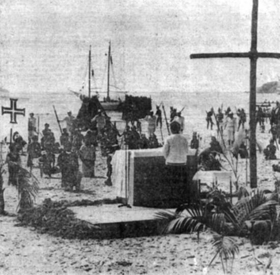 Martim Afonso manda então que se faça uma cruz de troncos de árvore e se improvise um
