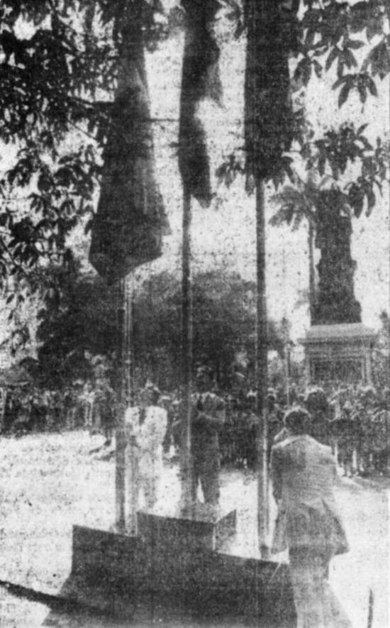 Brasil, assistindo ao prefeito Antônio Fernando dos Reis hastear a bandeira de Sâo Vicente; o presidente da Câmara, Raimundo dos Santos Oliveira, a