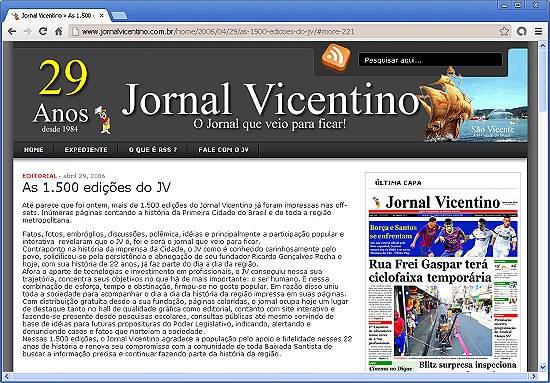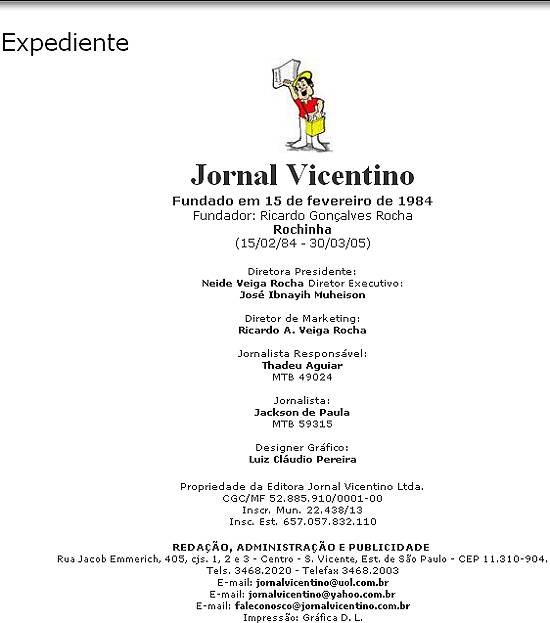 Imagem: expediente do Jornal Vicentino (acesso: 4/8/2013) |