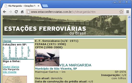"Em Vila Margarida até hoje os trens de cargas viram alvos móveis para pedradas da população local. Antigamente eram os trens de passageiros da Fepasa que quando passavam tinham suas janelas